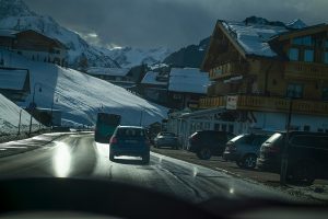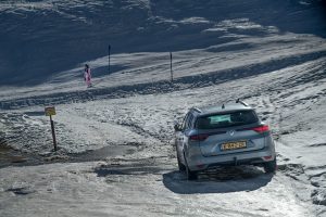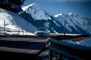 Ride a White Swan: Skoda Enyaq auf Parkplatz in Baad (Vorarlberg) © Kai von Kröcher, 2026
